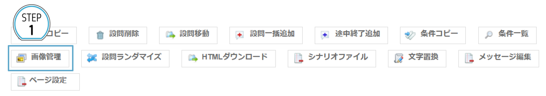 1.アンケート画面編集最下部>画像管理に画像をアップロードする