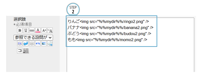2.選択肢に画像をタグで設定する
