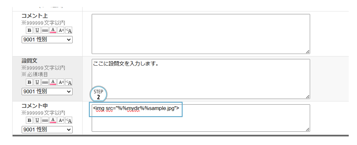 2.画像タグを設問内に記載する(コメント上中下、設問文、選択肢に設定が可能)