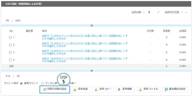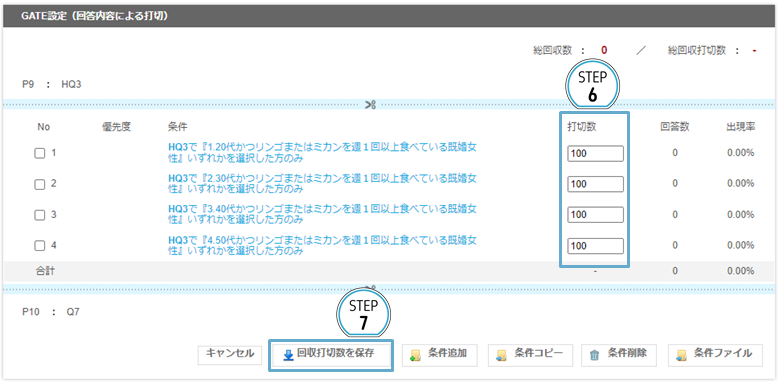 本調査の対象条件(割付)と本調査回答者数の上限を設定します。
