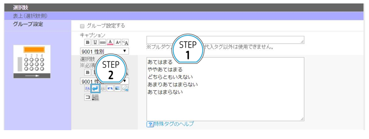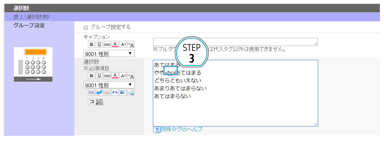 ※ 表示されるタグは選択肢欄への直接入力でも設定できます。