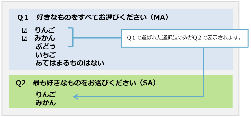 ※ 選択肢の引き継ぎ設定は、引き継ぎ先の設問で設定します。