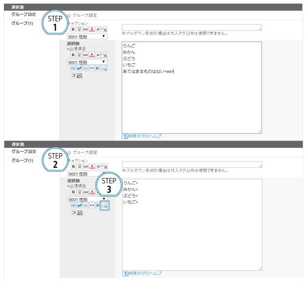 ※ 表示されるタグは選択肢欄への直接入力でも設定できます。