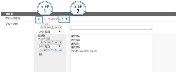 選択肢をグループでまとめ、キャプションを入れることができます。