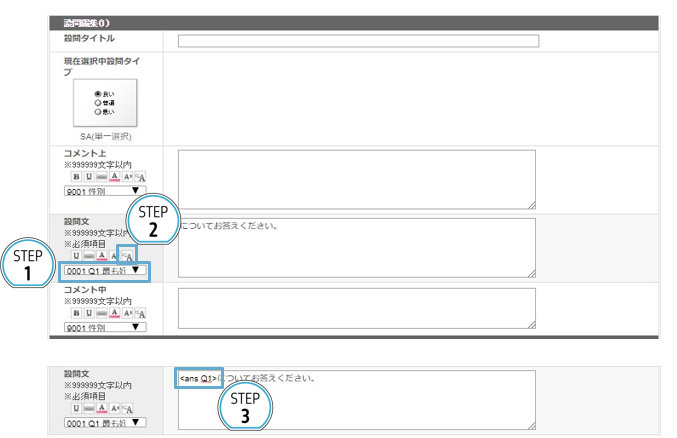 ※ SAの場合は参照元の設問を選択するのみで代入表示の設定が完了しますが、