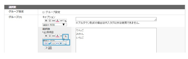 詳細は、選択肢入力欄下記の「特殊タグのヘルプ」をご参照ください。