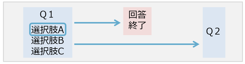 特定の選択肢選択した人を対象に回答を途中で終了させたい場合に途中終了を設定できます。
