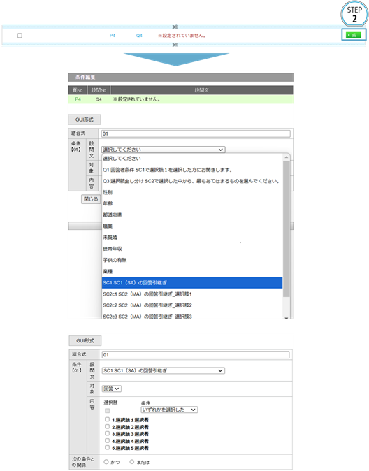 ・ MA設問など設定する場合、選択肢を1個ずつSA形式に修正が必要です