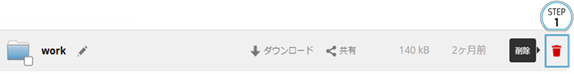 ① 削除したいフォルダにカーソルをあてて、右側に表示される「削除」アイコンをクリックする