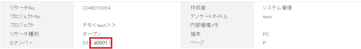 - 設定前にforSurveyで、制御したい設問のquIDを控えておきます(※1)